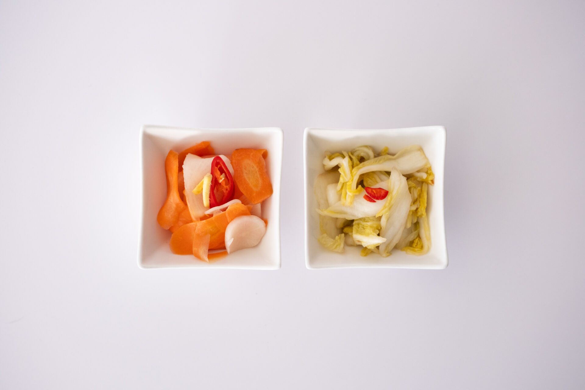 Wir verwenden hochwertige Produkte, um das eingelegte Gemüse zu kreieren.